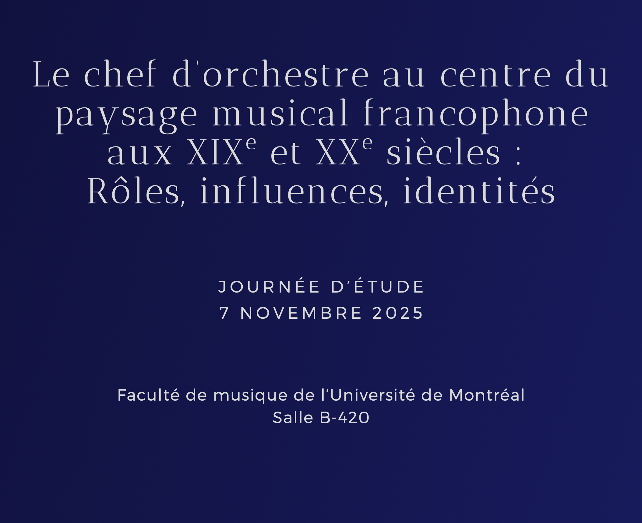 Séminaire international donné par les membres de l’Équipe de recherche sur la Musique en France aux XIXe et XXe siècles en collaboration avec des chercheurs de réputation internationale. Ce séminaire s’inscrit dans le programme de recherche général du Laboratoire musique, histoire et société de l’Observatoire interdisciplinaire de création et de recherche (OICRM). Il est ouvert aux étudiants des programmes de musicologie, de composition et d’interprétation.