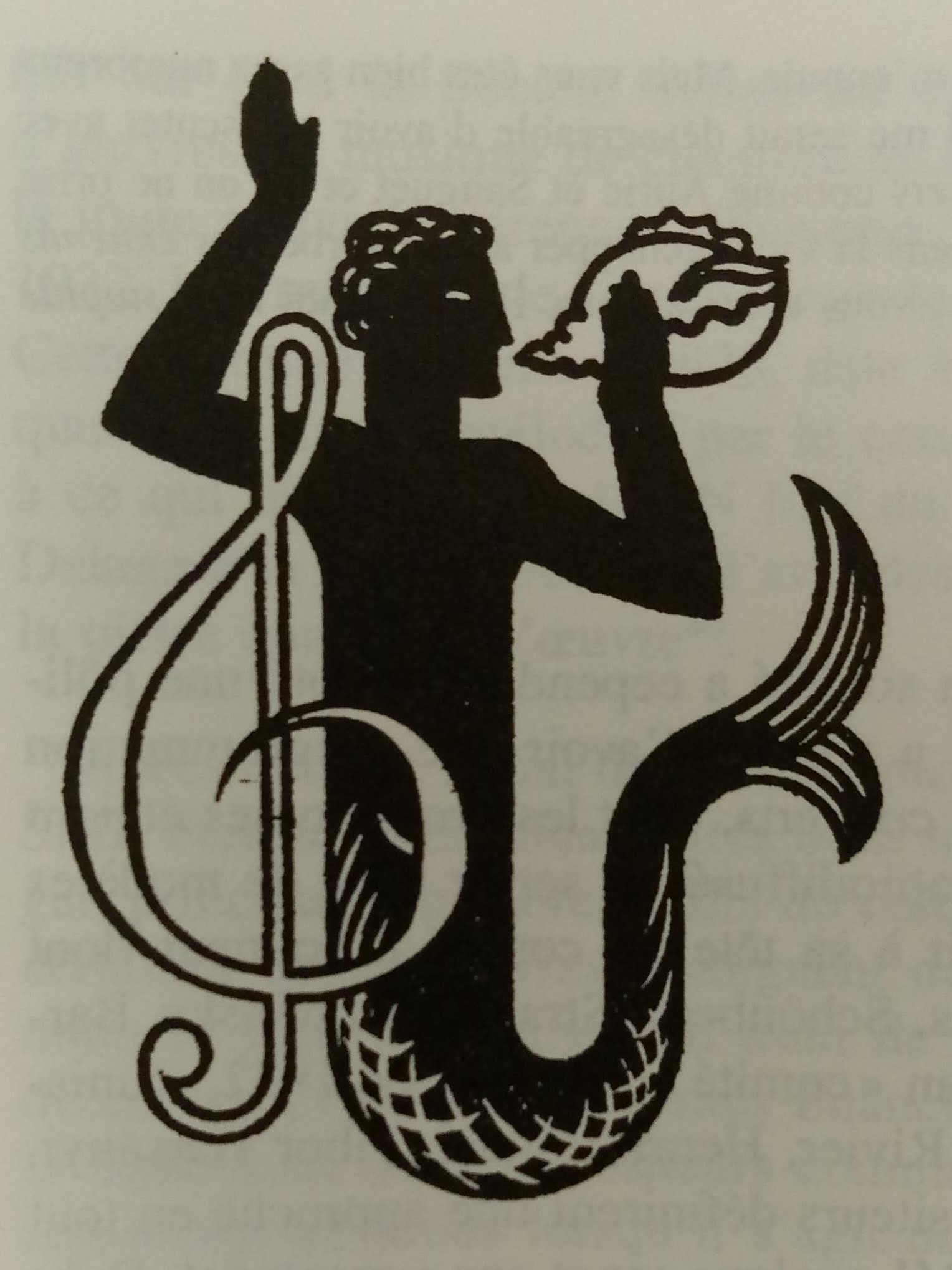 Le nom de «Triton» (proposé par Henri Tomasi) est, lui aussi, emblématique, en opposition notamment à l’esprit luxueux et rassurant de « Sérénade ». Cet effet de différenciation aurait été sans doute moins fort si, au lieu de « Triton », s’était imposé l’acronyme-calembour « Nousomcontem » (pour « Nouvelle société de musique contemporaine ») proposé par Sergueï Prokofiev (Prokofiev 2012, p. 1002) qui a résidé à Paris de 1920 à 1934. Triton renvoie à la fois à la dissonance (un triton étant l’intervalle « diabolique » de quarte augmentée que le modernisme musical a utilisé à profusion dans sa croisade contre l’harmonie traditionnelle) et à la force (le logo de la société sera en effet un triton – Neptune en personne ? – brandissant une clé de sol à la place du trident habituel ; Figure 1).